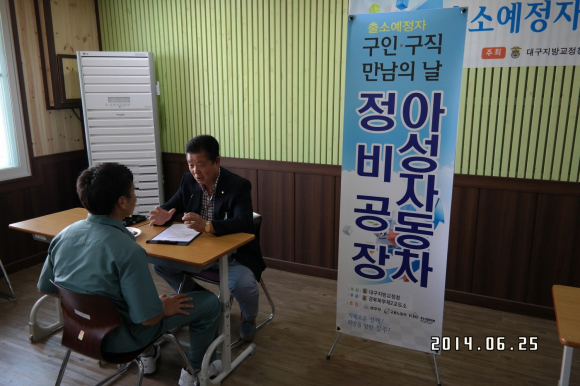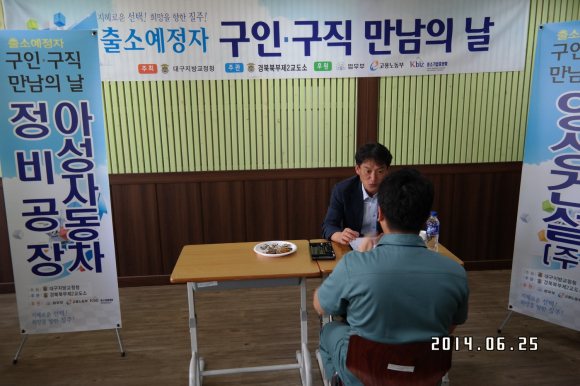 |  | | | ⓒ GBN 경북방송 | | 경북북부제2교도소(소장 신동윤)는 25일 2014년 제3회 출소예정자「구인․구직 만남의 날」및 2014년 상반기「수형자 취업지원 협의회 정기회의」를 개최했다.