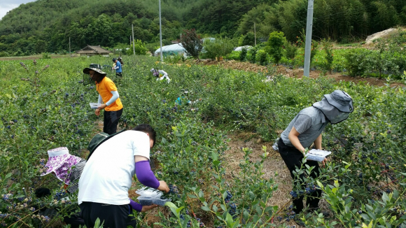 새소득작목으로 자리잡은 블루베리 수확작업