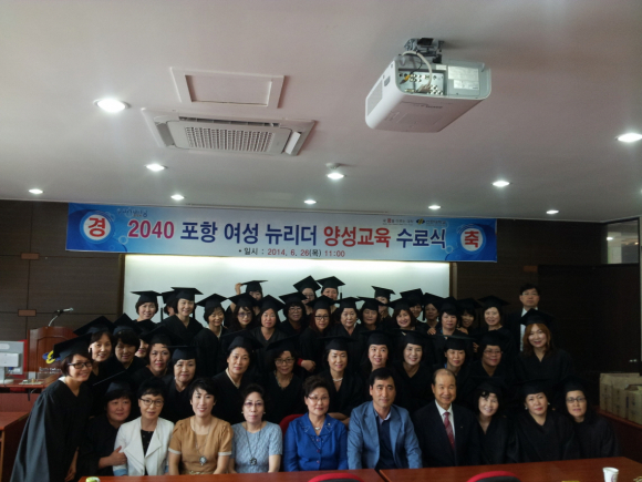 포항시가 26일 선린대학교 평생교육원 믿음관에서 ‘2040 포항여성뉴리더 양성교육’ 수료식을 가졌다.