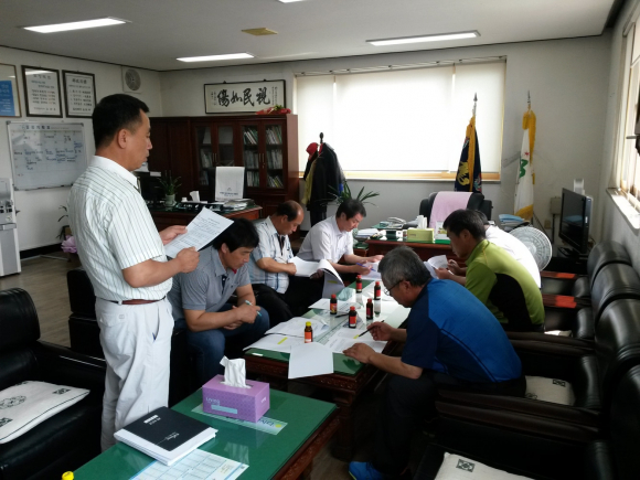 용암면에서는 26일 오전 10시 면사무소 회의실에서 2014년 시설원예품질개선(하우스파이프 교체)사업, 과수농가 반사필름 공급사업 및 기타 보조사업 변경 신청 125농가에 대한 들녘 환경 심사위원회를 개최했다.