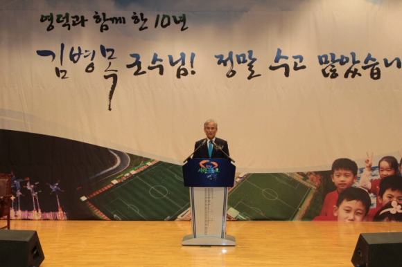 |  | | | ⓒ GBN 경북방송 | | 영덕군은 27일 영덕문화체육센터 실내체육관에서 민선 3기부터 민선 5기까지 9년간 영덕군을 이끌어 온 김병목 군수의 퇴임식을 개최했다고 밝혔다.