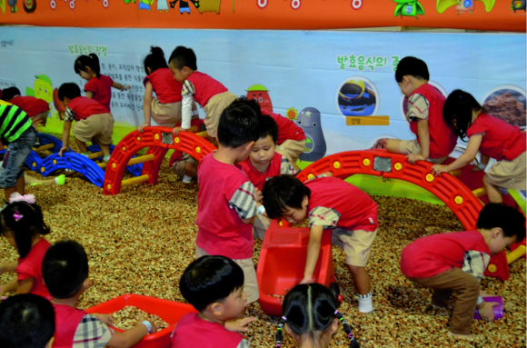 네 번째 테마 ‘콩 놀이터’는 방안 가득 콩과 소꿉놀이 장난감으로 가득한 콩풀에서 자유롭게 뛰어놀 수 있는 건강 놀이터이다. 이곳에서는 맷돌체험과 ‘밥상머리 교육’도 함께 어우러진다.