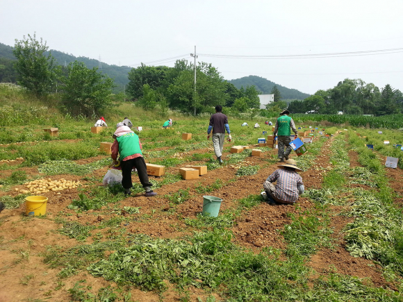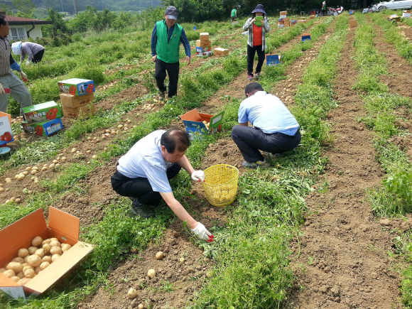 황남동 남여 새마을회(회장 : 오주도, 임순자)는 지난 3월 25일 황남동(율동 1745-2번지) 휴경지에 감자심기를 실시 하여, 6월 30일 감자를 수확했다.