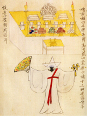 네, 그것은 무속신앙에 잘 남아 있어요. 무당이 쓰는 고깔 형태의 모자는 바로 ‘뱀의 머리’를 상징해요. 뱀의 머리가 삼각형이잖아요. 따라서 무당이 쓰고 있는 고깔모자는 천지간에 있는 영혼들을 상징하죠. 무당이 생명의 영혼들과 소통한다는 것을 나타내고 있어요.