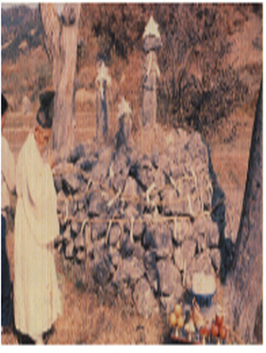 태양의 에너지를 상징하는 뱀은 원래 지하(저승)신의 아들이었어요. 우리민속에 살아있는 동제를 지낼 때 동제의 제사 대상인 남근석에 고깔을 씌우기도해요(사진). 이 장면은 한국 무속을 이해할 수 있는 가장 상징적인 모습이다. 남근과 고깔 형태의 모자와 무당의 고깔모자, 필자는 단군은 고깔모자를 썼다고 주장한바 있다. 단군은 대지의 생명력을 대표하는 존재이다. 그는 생명의 영들을 인도하는 자이다. 그는 생명을 잘 이끌어 세상을 널리 이롭게(弘益人間)하는 자였던 것이다.