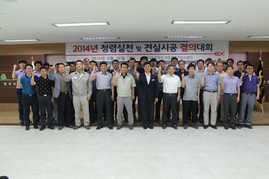 한국도로공사 안동영덕건설사업단는 지난 달 30일 건설사업단 전 직원과 시공업체 현장소장, 감리원 등 40여명이 참석한 가운데 “2014년 청렴실천 및 견실시공 결의대회”를 실시했다.