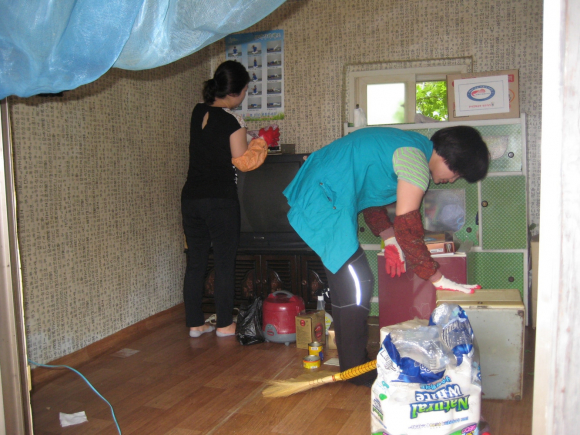 집안 구석구석에 쌓인 먼지를 쓸고 닦고, 빨래 및 부엌을 정리하였다. 또한 씻지 못하시는 어르신 목욕을 시켜드리며 병원이라고는 가보지 않으셔서 무좀으로 발톱이 변형되고 두꺼워져 이상하게 변해버린 발을 불려 무좀부위를 잘라주고 약을 발라주었다. 어르신은 “혼자사는 노인을 찾아와 주는것만으로도 고마운데 이렇게 청소며 시원하게 목욕까지 시켜줘서 고마워”라고 하시며 눈시울을 붉혔다.