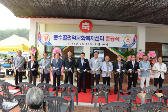 이날 개관식에는 풍물놀이와 색소폰연주 등 다양한 축하 행사와 박노욱 봉화군수를 비롯한 지역 기관단체장, 주민 등 300여명도 참석하여 개관식을 축하해 주었다. 문수골권역 홍승철 위원장은 “지난 2011년부터 농촌마을종합개발사업의 성공적인 추진을 위하여 힘들게 달려온 결실로 문화복지센터 개관을 하게 되어 매우 기쁘게 생각하며, 앞으로 권역의 대표적 자원인 산수유, 가재, 교육체험농장 등을 이용한 다양한 프로그램 개발과 시설운영으로 지역민들과 도시민들이 교류할 수 있는 통합형 문화복지공간으로 활용할 계획”이라고 말했다.