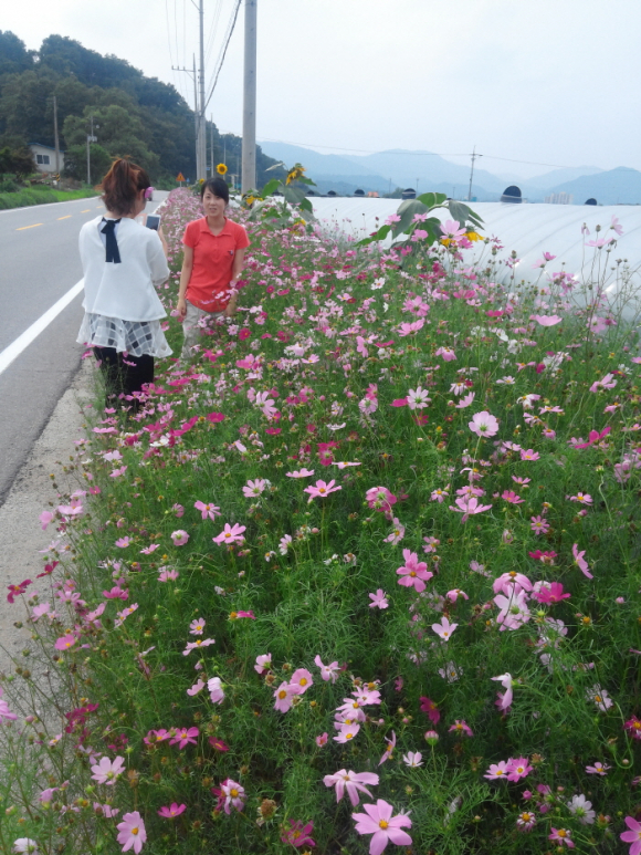 초전면에서는 지난 3월부터 클린 성주만들기의 일환으로 도로변 유휴지를 활용 코스모스와 해바라기를 식재하여 왔으며 특히 주변 농경지 농자재 적치를 사전에 방지하고 깨끗하고 쾌적한 들판 환경 개선을 통해 명품 성주 참외의 이미지 제고에도 최선을 다하고 있다