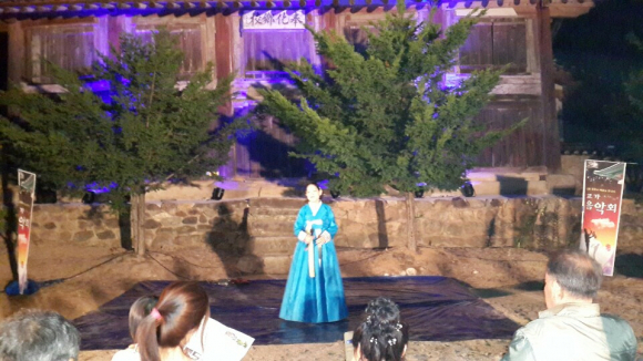 지난 19일(토) 오후 8시에 봉성면 봉성향교에서는 『고가(古家), 문화와 예술을 만나다』라는 주제로 고가 음악회가 열렸다. 봉화군과 (재)세계유교문화재단이 주최하고 대양기획이 주관하였으며 올해로 두 번째를 맞았다.