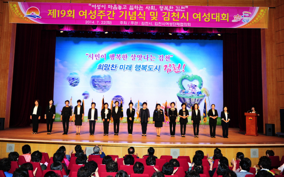 |  | | | ⓒ GBN 경북방송 | | 김천시가 주최하고 김천시여성단체협의회에서 주관한 『제19회 여성주간기념식 및 김천시 여성대회』가 지난 22일 김천시문화예술회관 대공연장에서 성대하게 개최되었다.