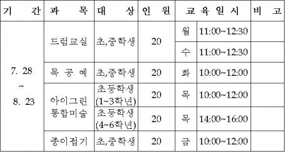 문화예술 창작활동으로 청소년의 건전한 여름방학 나기