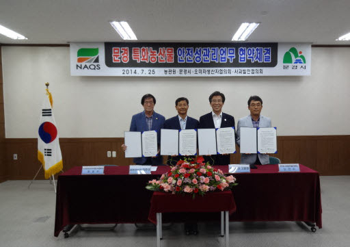 |  | | | ⓒ GBN 경북방송 | | 문경시는 25일 국립농산물품질관리원 문경사무소(소장 김준규), 문경오미자생산자협회(회장 유성수), 문경사과발전협의회(회장 노진수)와 오미자, 사과 재배농가 60여명이 참석한 가운데 문경시의 특화농산물인 오미자․사과 재배에 대한 안전성관리강화 업무협약(MOU)을 체결 했다.