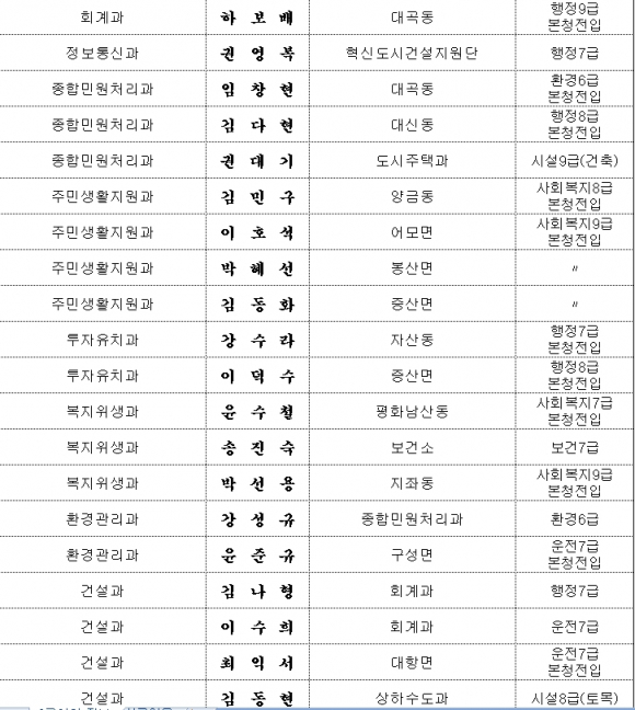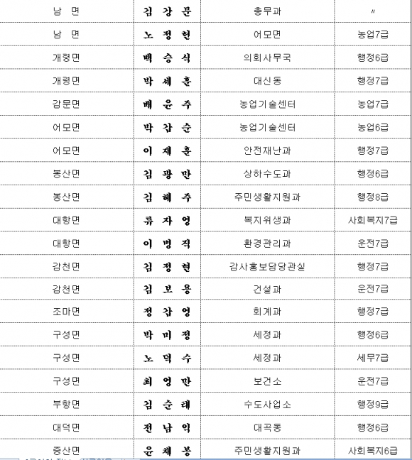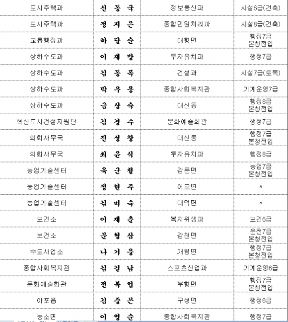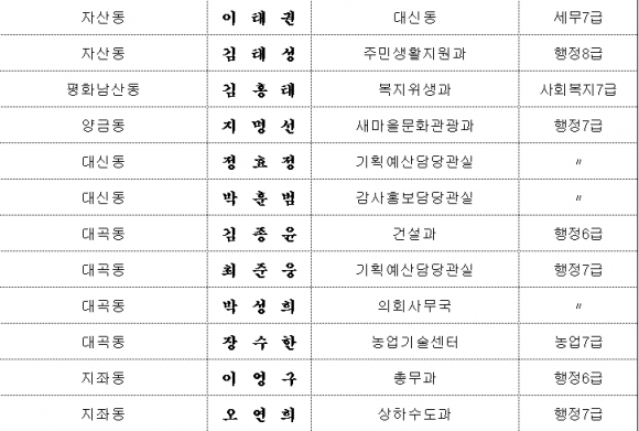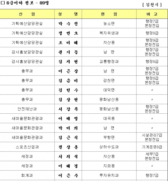 김천시, 하반기 6급 이하 공무원 96명 정기 인사