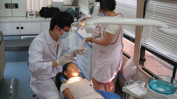 치과이동차량을 이용한 구강진료서비스는 지역아동들의 구강건강관리 능력 향상을 위해 간단한 유치발치, 치석제거, 불소도포, 치아홈메우기, 1:1잇솔질 교습 및 구강보건교육 등 구강관리 프로그램과 치과진료가 시행된다.