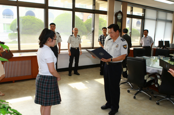 이날 곽생근 서장은 각 과장이 참석한 가운데 서장실에서 상장과 부상을 수여하면서 “학교폭력 근절은 경찰의 힘만으로는 어렵다”고 강조하고 그동안 학교폭력예방을 위해 적극 활동을 펼쳐 주신데 감사드리고 앞으로도 학교폭력 근절을 위해 노력해 달라고 당부했다