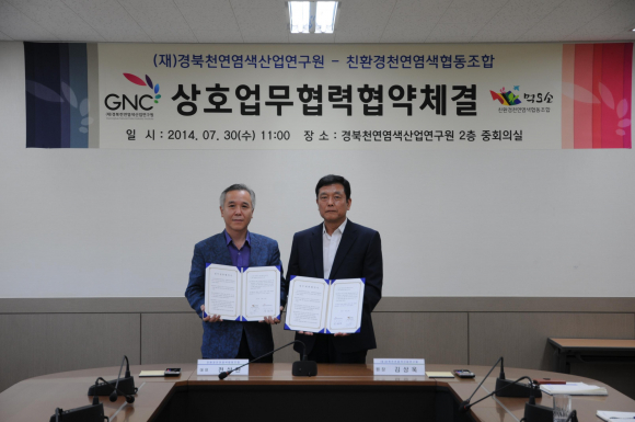 |  | | | ⓒ GBN 경북방송 | | (재)경북천연염색산업연구원과 친환경천연염색협동조합은 30일 본연구원 중회의실에서 효율적인 천연염색 교육사업 수행을 위해 업무협약을 체결했다.