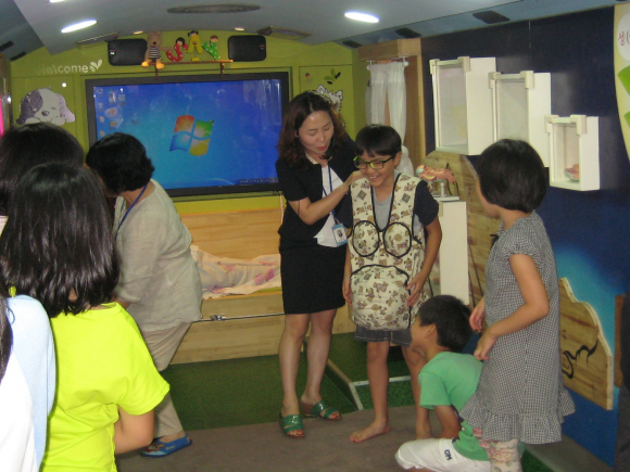 경북북부성문화센터 성교육전문가의 지도로 지역 아동․청소년이 직접 체험형 이동버스 내에서 진행한 이번교육은 다양한 체험 도구를 가지고 아기를 가진 엄마의 심장 소리를 듣고 느껴보기, 뱃속아기 되어보기, 아기 모형을 이용한 신생아 안아보기 등을 체험하고, 연령에 맞는 성교육을 실시함으로써 생명탄생의 신비와 나의 소중함을 인식하고 사춘기 신체변화와 10대 성적자기결정권, 사회속의 성문화 등을 알 수 있는 소중한 시간을 가졌다.