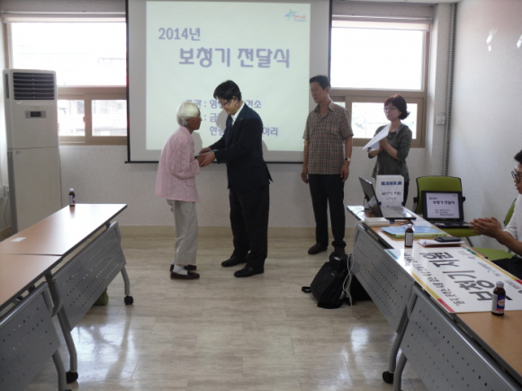 보청기 무료 지원 사업은 청력 저하로 인한 불편에도 불구하고 어려운 생활 형편 때문에 보청기 구입은 엄두를 내지 못하는 저소득 어르신들에게 청력회복을 위한 무료 지원 사업의 일환으로 관내 보청기 판매업체인 영천 금강(구. 독일)보청기와 한림대학교 청각동아리 “베네핏”에서 보청기 1대(200만원)의 기증으로 전달했다.