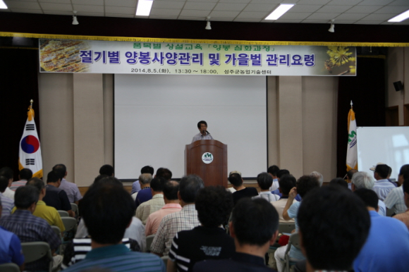 |  | | | ⓒ GBN 경북방송 | | 성주군(군수 김항곤)에서는 지역 양봉산업의 고소득 창출을 위해 5일(화) 양봉 재배 농업인 100여명이 모인 가운데 센터 대강당에서 「절기별 양봉 사양관리 및 가을벌 관리요령」이란 주제로 교육을 실시했다.