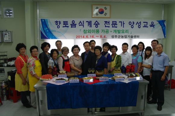 성주군농업기술센터 (소장 장상영)는 성주군우리음식연구회 회원을 대상으로 교육한 「향토음식전문가 양성과정」 최종 평가회 및 수료식을 4일 실시했다. 이번 교육과정은 향토음식을 선도할 전문인력을 양성하고 참외를 이용한 가공식품 개발로 지역 농산물의 부가가치 향상을 위해 지난 6월 16일부터 총 8회에 걸쳐 대경대 발효학 교수진 (권오진, 원미경 교수)을 강사로 하여 전통 식초, 술, 참외이용 식초, 참외이용 가공요리 등을 이론과 실습과정을 병행하여 추진하였다.