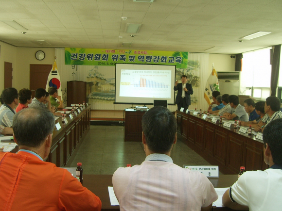 건강위원회의 역할과 대가면 주민 1,136명을 대상으로 실시한 건강현황 조사결과에 대한 분석발표와 교육은 경상북도 통합건강증진사업 지원단 이경수 교수(영남대학교 의과대학)가 담당하였고, 교육 후 위원들과의 간담회를 통하여 마을별 건강문제 해결방안에 대한 논의가 활발하게 이루어 졌다.