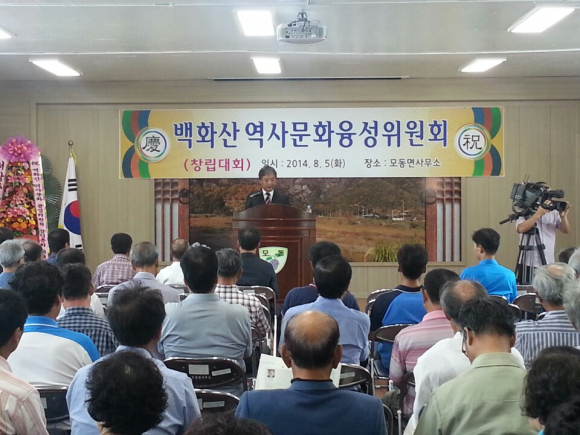 상주시 모동면 백화산 역사문화 융성위원회(수석위원장 황학연)에서는 5일 모동면사무소 회의실에서 주민 등 150여명이 참여한 가운데 백화산 역사문화융성위원회 창립대회를 가졌다.