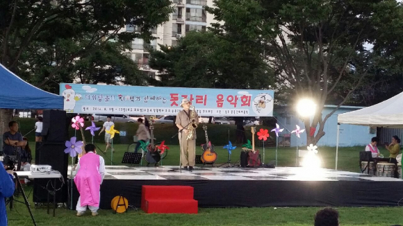 한편, 9일 7시 성밖숲 야외마당에서 개최된 「돗자리음악회」는 풍물굿패 어울림(회장 전영미)주관으로 영남사물놀이, 색소폰공연, 통기타 공연뿐만 아니라 공연 사이에 띄어준 재난 영상은 관내주민뿐 아니라 성주를 방문한 외국인에게도 가족의 소중함을 일깨워 주는 아주 뜻 깊은 계기가 되었다.