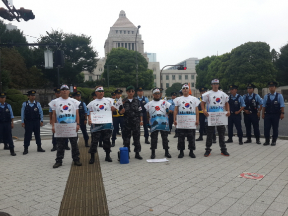 특수임무유공자회 경북도지부는 제69주년 광복절을 맞아 일본 현지에서 독도 침탈 야욕을 규탄하는 기습 시위에 나섰다.