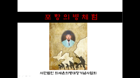 |  | | | ⓒ GBN 경북방송 | | 포항 흥해 출신으로 산남의진 3대 대장이었던 최세윤 의병대장과 포항을 비롯 경북 동해안 지역 출신 의병들의 숭고한 의병정신을 되새기는 의병체험 행사가 포항에서 처음 열린다.