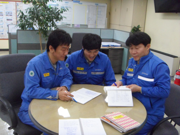 포항제철소 선재부는 2010년 이후 입사자 96명을 대상으로 멘토링 교육을 지난해부터 실시해 저근속 직원들의 역량향상을 이끌고 있다. 특히 ‘직무학습노트’를 활용해 이루어지는 교육방법이 큰 효과를 보고있는데, 공장장 및 정비과장이 저근속 직원이 스스로 작성한 학습노트의 내용을 참고해 작업노하우를 가르침과 동시에 올바른 학습방향을 코칭할 수 있어 직원들의 호응이 매우 높다.