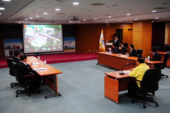 박보생 김천시장이 직접 주재한 이번 보고회는 관계 국장 및 과장들이 참석했으며, 보고는 조달청 용역입찰에서 과학축전 행사 대행사로 선정된 (주)더파워에서 진행했다.