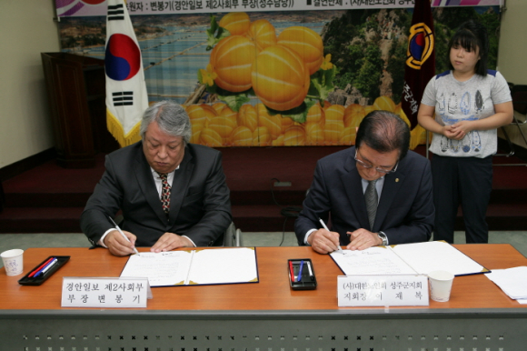 20일 경안일보 변봉기 부장이 (사)대한노인회 성주군지회와 매년 후원을 약속하는 약정을 맺었다. 2014년 8월부터 매년 500만원 씩 4년간 후원할 것을 약속하였다.이는 노인복지 향상을 위한 사업에 쓰여질 예정이며「대한노인회 성주군지회」운영에 큰 도움이 될 것으로 기대된다.