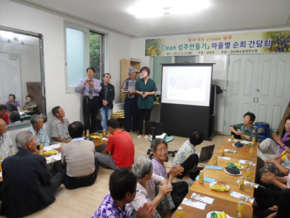 2013년 성주군과 MOU 체결을 통하여 “클린성주” 군민의식교육을 전담한 ‘경상 북도 환경연수원’이 교육 주관이 되어, 농사일로 바쁜 시간을 피해 오후2시와 저녁 6시에 강사진이 직접 마을 회관을 찾아 실시하게된다.