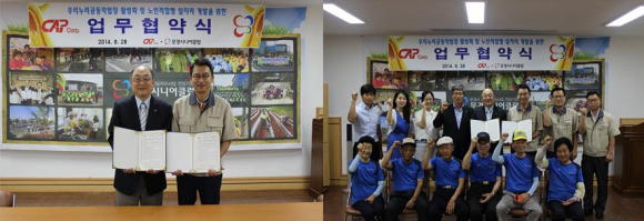 문경시니어클럽(관장 김정부)과 주식회사 캐프(대표 김영호)는 28일 10시 문경시니어클럽 회의실에서 노인적합형 일자리 개발 및 공동작업장 활성화를 위한 업무협약(MOU)식을 가졌다.