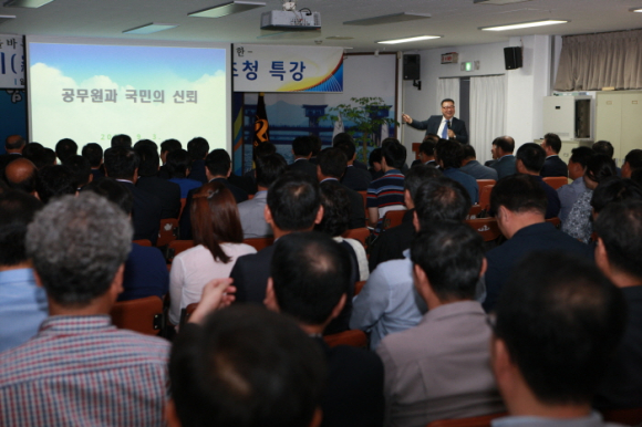 특강은 의성군 정례조회를 기하여 9월 3일 오전 9시부터 10시까지 1시간동안 의성군청회의실에서 “변화와 혁신의 시대 올바른 공직자세” “공직자가 지켜야할 법질서” 등 공직자 의식개혁과 혁신마인드 함양에 대한 교육으로 진행됐다.