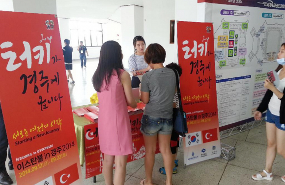 |  | | | ⓒ GBN 경북방송 | | 굵직굵직한 행사를 통한 홍보도 놓치지 않고 있다. 지난달 열린 경북도민체전(문경)과 세계태권도한마당(포항) 등 대규모 행사장을 찾아 보다 많은 사람들이 관심을 갖고, ‘이스탄불 in 경주’ 행사장으로 발길이 이어질 수 있도록 노력했다. 또 국제패트롤잼버리대회(상주)와 전국유소년축구대회(경주), 세계우표전시회(서울) 등에도 참여해 행사 홍보에 나선바 있다.