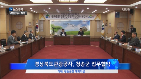 4일 오후3시 청송군청 대회의실에서 경상북도관광공사(사장직무대행 김태식)와 청송군(군수 한동수)이 지역관광 활성화를 위한 경험과 노하우의 공유 및 각종 정보의 상호교류를 통한 시너지 효과를 창출하기 위해 업무협약(MOU)을 체결했다.