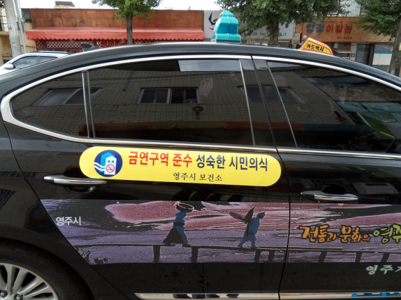 이번 홍보는 9월부터 12월까지 4개월간 실시하며 영주 모범택시 43대를 대상으로 금연구역 홍보 스티커를 부착하여 시민들에게 대대적으로 홍보할 예정이다.