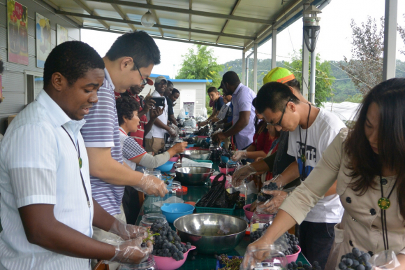 |  | | | ⓒ GBN 경북방송 | | 이날 교육은 영천와인학교 포도가공산업 성공사례, 과수의 품질향상 방안, 누에치는 마을 성공사례를 경청하고 농기계 임대사업장, 과수포장을 견학하고 이어 까치락골 와이너리와 경북대학교 포도마을을 방문하여 포도수확, 양조 체험을 하는 코스였다. 필리핀대학을 졸업하고 한국의 공공정책과 국제개발협력을 전공한 사라(SARAH, 여 30세)학생은 본국에서 영천의 농업정책을 적용하여 농촌개발에 큰 도움이 될 것으로 예상하며 특히, 영천농업인들이 매우 부지런한 것을 자국의 국민들이 본받아야 된다고 소감을 밝혔다.