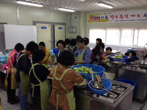 경북참외산학연협력단(단장 서전규 전 경북대교수)과 성주군농업기술센터(소장 장상영)공동주관으로 9월12(금) 성주참외이용 향토음식제조기술 위크숍을 개최하였다. 우리음식연구회원 30여명이 참석한 가운데 농업기술센터 식품가공실에서 열린 워크숍에서는 성주참외이용 가공기술에 대한 다양한 의견교환 및 연구방안과 특히 참외효소, 참외조청, 참외식초만들기, 장아찌 등 전통방식을 이용한 제조기술 연찬을 중점적으로 실시하였으며 향후 성주참외의 부가가치 향상에 적극 반영할 계획에 있다. 이번 합동 워크숍에서 남주현 경북참외산학연협력단 참외이용지원팀장(대구공업대교수)는 참외 기능성의 우수함을 바탕으로 식품가공, 한방·미용 등 다양한 분야에서 이용가치의 극대화를 위한 필요성을 강조했다. 성주향토음식대표브랜드로 육성하고 있는 “고방찬“과 농가맛집 “밀“을 비롯한 참외조청을 이용한 유과생산대표업체 “수미담”등도 참외이용 향토음식 제조에 참여 성주음식 대표메뉴로 선보일 계획이다.