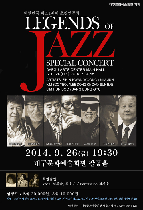 국내 최고 재즈 거장들이 大邱를 찾아온다! 2014. 9. 26(금) 19:30 / 대구문화예술회관 팔공홀