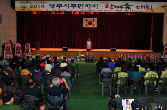 영주시(시장 장욱현)에서는 17일 국민체육센터에서 영주시주민자치연합회(회장 민대식) 주관으로 영주시 17개 읍면동 주민자치위원회 위원 및 동아리회원 등 1,000여명이 참여하여 화합과 친목을 다지는 ‘2014 영주시 주민자치 한마음대회’를 개최했다.