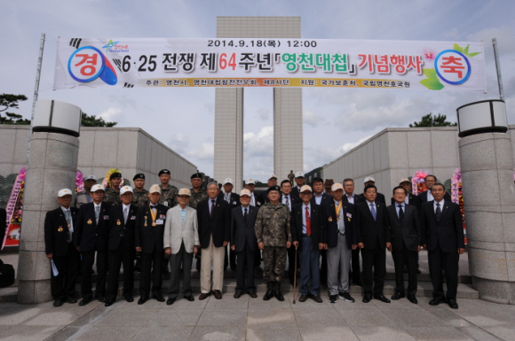 올해로 64주년을 맞이하는 영천대첩 기념행사는 영천시, 영천대첩참전전우회, 육군 제8보병사단 주관으로 개최되었다. 이 자리에는 주낙영 경상북도 행정부지사, 김종수 영천시부시장, 영천대첩 참전전우회장(이범선), 육군제8기계화보병사단(사단장 제갈용준), 국립영천호국원(원장 노원근), 전국 각 지역 영천대첩참전전우회원, 기관단체장, 보훈단체, 군관계자 등 600여명이 참석했다.