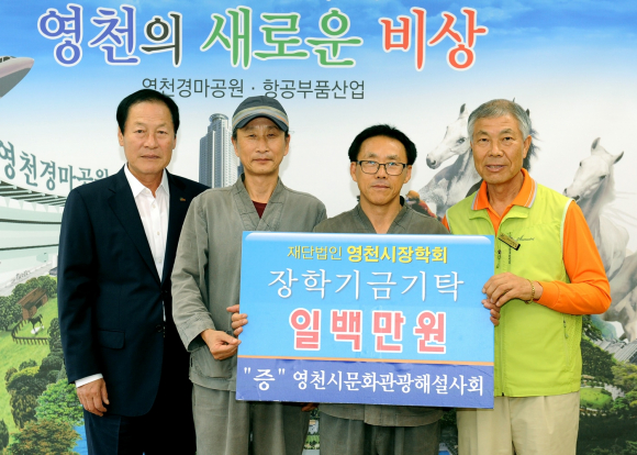 지난 24일 영천시장학회(이사장 김영석)에 청통면 신덕리에서 양돈업을 하고 있는 조동형씨가 500만원, 영천시 문화관광해설사회에서 100만원을 기탁했다.