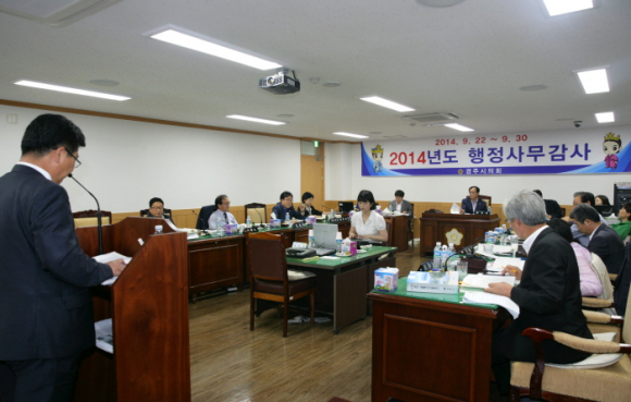 |  | | | ⓒ GBN 경북방송 | | 경주시의회(의장 권영길)는 제1․2행정사무감사 특별위원회를 구성하여 경주시 행정사무 전반에 대하여 22일부터 25일까지 4일간 본청 및 사업소, 경주문화재단, 신라문화유산연구원 등에 대한 행정사무감사를 마쳤다.