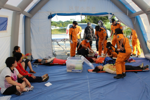현장응급의료소 설치 및 중증도 분류반, 응급처치반, 이송반, 임시 영안소 운영을 체계적으로 수행해 다수의 환자 발생 시 구급시스템 가동능력을 강화하고 관계기관의 공조체계를 구축하는데 중점을 두고 진행됐다.