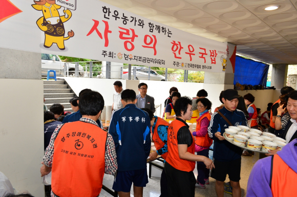 사랑의 한우국밥 나눔행사는 전국한우협회 소속의 농가들이 어려운 이웃과 소외계층에 사랑을 전하기 위해 자체 조성한 사회공헌 한우 자조금으로 제공하고 있으며, 이날 개최한 영주시 장애인 한마음 체육대회에도 (사)전국한우협회영주시지부의 회원과 가족으로 구성된 봉사단이 음식준비와 배식 등 현장 봉사활동을 전개하며 이웃사랑을 몸소 실천하여 모두가 한가족이라는 일체감 조성과 더불어 사는 훈훈한 사회를 만드는 데 일조를 하였다.