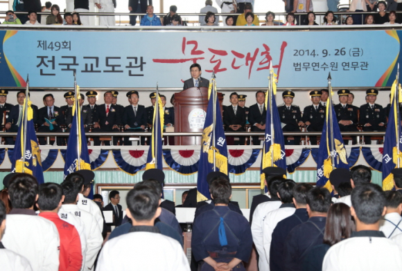 법무부는 26일(금). 11:00, 경기도 용인 법무연수원에서 황교안 법무부장관, 윤경식 교정본부장, 대한체육회 산하 경기단체 관계자, 선수단 등 1,000여명이 참석한 가운데 제49회 전국 교도관 무도대회를 개최했다.