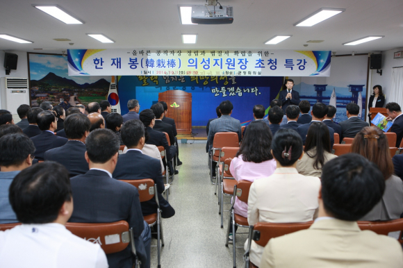 이를 위해 한재봉(韓栽棒) 대구지방법원 의성지원장을 초청 특강을 가졌다. 특강은 의성군 정례조회를 기하여 10월 1일 오전 9시부터 10시까지 1시간동안 의성군청회의실에서 “변화와 혁신의 시대 올바른 공직자세” “법질서 확립과 공지자의 역할” 등 공직자 의식개혁과 혁신마인드 함양에 대한 교육으로 진행됐다.